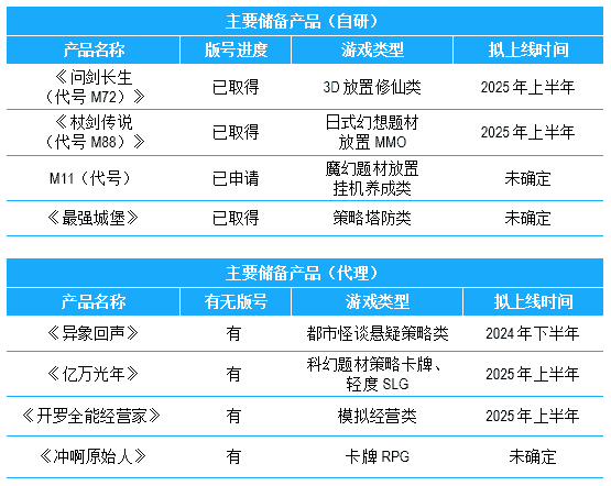 公司储备多款新品,,,期待为玩家解锁更多新鲜体验,,部分产品如下表所示:::