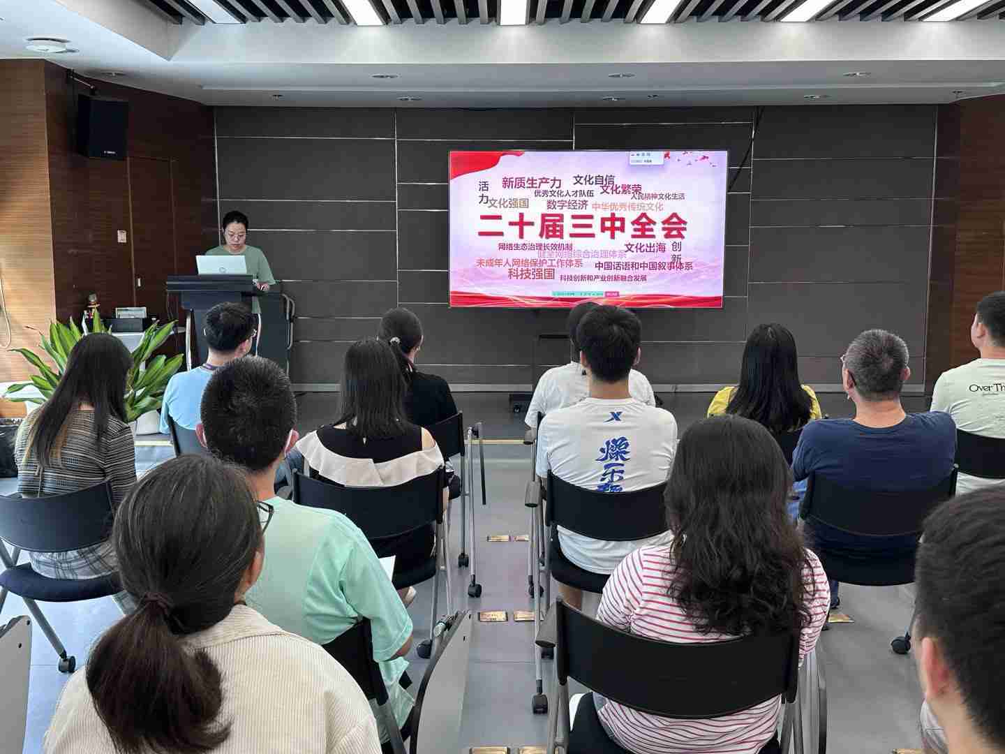 与会人员深入学习《决定》内容。。。党的二十届三中全会提出必须增强文化自信,,,发展社会主义先进文化,,,,弘扬革命文化,,,,传承中华优秀传统文化,,加快适应信息技术迅猛发展新形势,,构建更有效力的国际传播体系,,,,这为广大文化产业工作者指明了奋斗方向。。